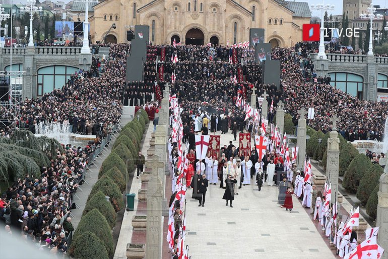 Một “hành lang tri ân” được thiết lập trên các đường phố giữa hai nhà thờ: các binh sĩ mang cờ Georgia đứng dọc tuyến đường đoàn rước. Hàng chục nghìn người đã tham gia đoàn tang lễ trọng thể đi phía sau linh cữu.