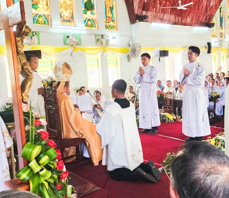 Thánh lễ truyền chức do Đức cha Jean-Marie Vianney Prida Inthirath, Đại diện Tông tòa Savannakhet, cử hành tại nhà thờ Thánh Louis ở Thakhek, trước sự tham dự của hơn 1.200 tín hữu Công giáo từ khắp cả nước và các quốc gia lân cận, như Thái Lan và Philippines.